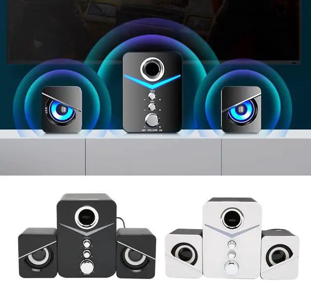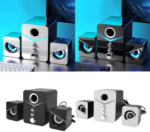 [Shocking Sound] Computer speaker has 3 high power speakers that double the volume, the volume is upgraded, and the sound brings you extraordinary sound and video enjoyment. ^^ [Bluetooth 5.0 ] Laptop speaker has a built in Bluetooth chip, so you can listen to music without a cable, and you can enjoy the fun music brought by within a range of 10m / 33ft. ^^ [Ice Blue Ambient Light] Bluetooth computer speaker has an ice blue ambient light, full of technology sense, brilliant light, let auditory sense and visual sense integrate.