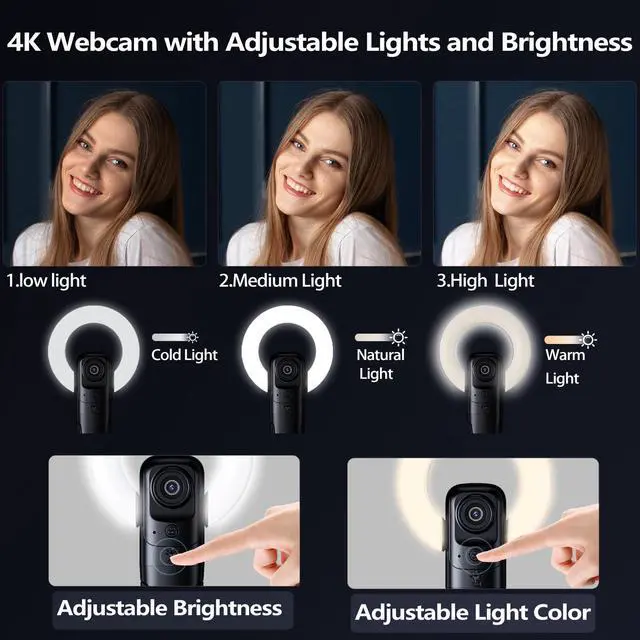 Do you need a 4k HD camera? It can go to adjust the shooting angleIt can also adjust the light colour/brightnessIt would be great if it comes with a complimentary standIs it hard to find such a versatile mount that fitsDon't worry - the Combess Multi-Function 4k camera for computer is here! Combess Webcam for PC/Desktop FeaturesOur combess camera has 4k HD pixels for eye contact. Adjustable bracket for height/angle adjustment. 3 colours of light to choose from / 3 levels of brightness to adjustWhy Choose CombessWe specialise in 4K Webcam with Light, focus on doing a good job with webcam 4k, we focus on the user experience, the user experience above all.