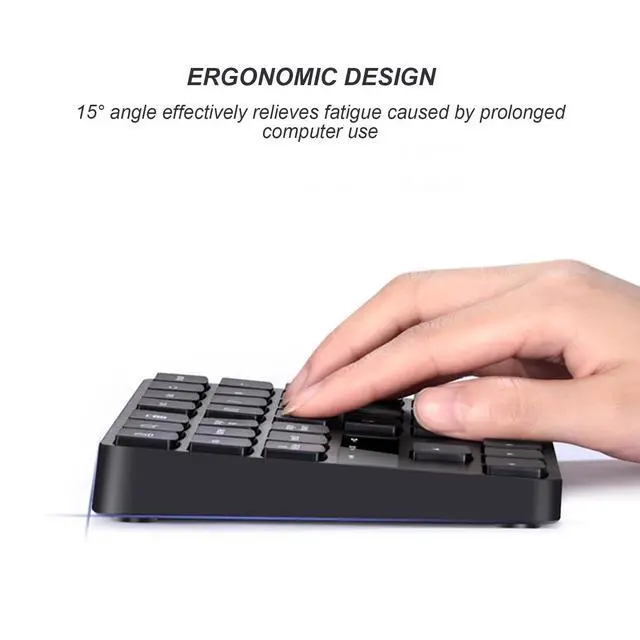 Practical: The keypad is made of ABS, stylish and sturdy; Ergonomic tilt, scissor key, and back non slip pad provide better comfort; With automatic sleep function, press any key to wake up the keypad