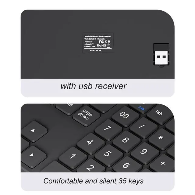 Connection Modes: This numeric keypad supports multiple connection modes, 2.4G, BT 5.0 and BT 3.0, which can be switched between different devices, providing a simple and fast input experience ^^ 35