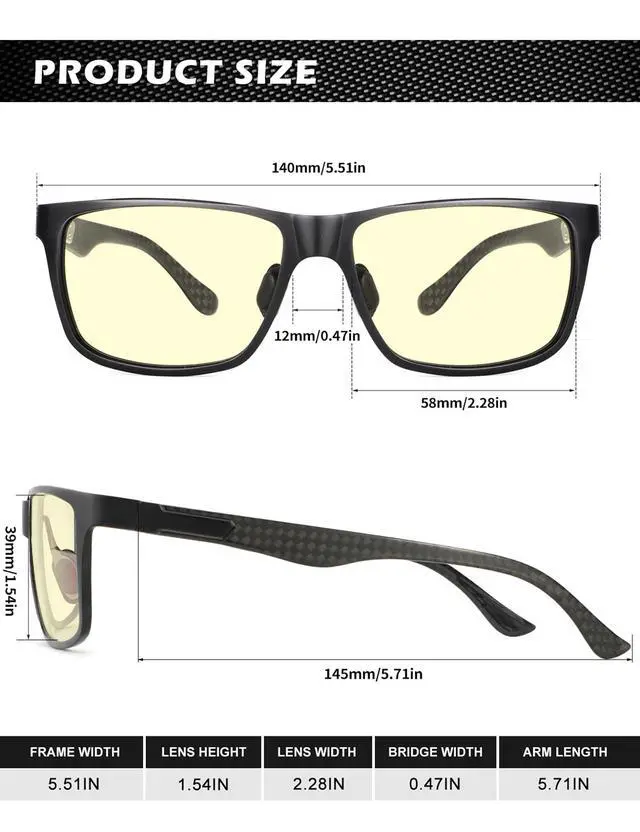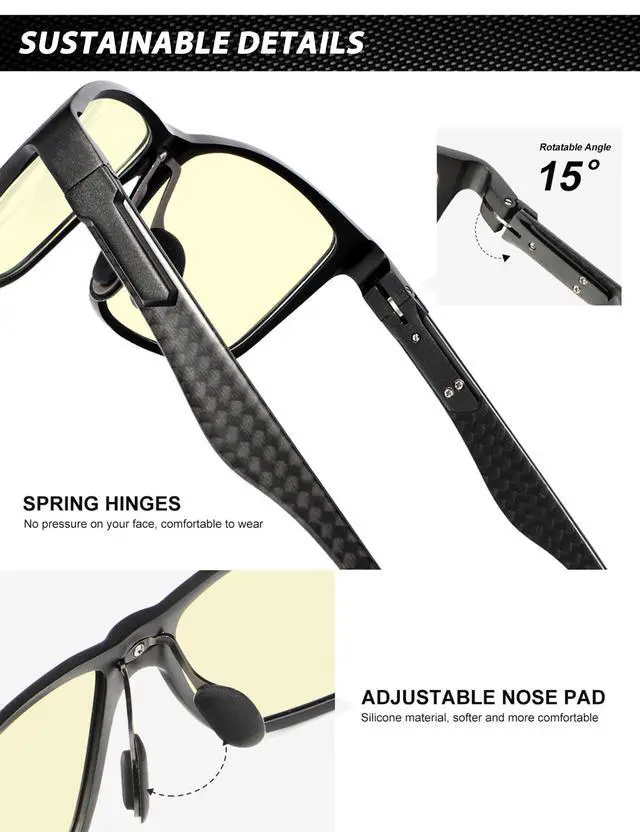 ^^ Premium Temple Material: With superior Al-Mg and carbon fiber composite temple, this type of blue light blocking glasses for men is ultra-light than pure metal frame, also more sturdy. No more worries about broken temples. As more suitable for anyone who often work or play games by the computer, do not miss this pair of practical and classic blue blocker glasses. ^^ Take Care of