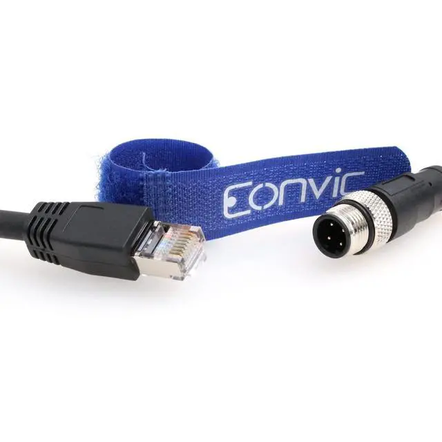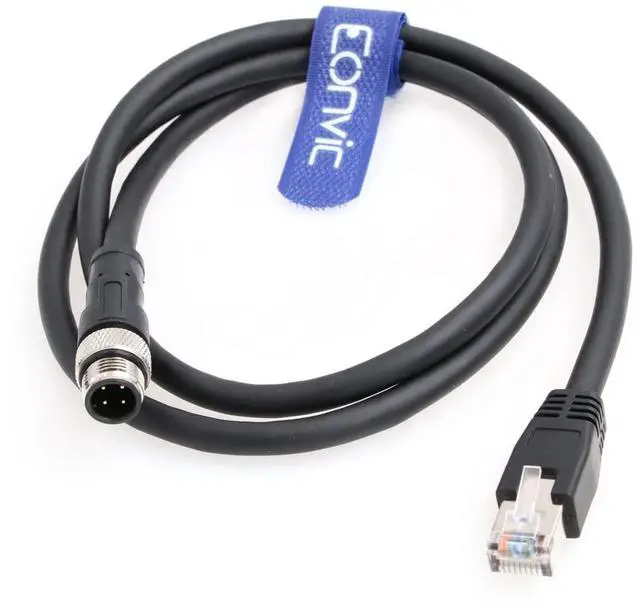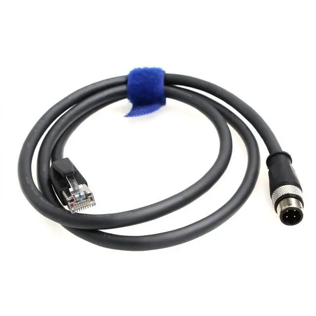 • M12 4pin D-code RJ45 E4 Plug ETHERNET Cable is a single foil twisted pair cat5e cable with a blue PUR jacket rated at 24 AWG wire M12 Connector with gold plated 4 pin coded contacts ensure reliable connectivity