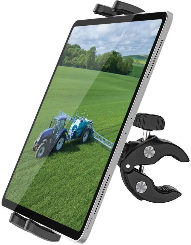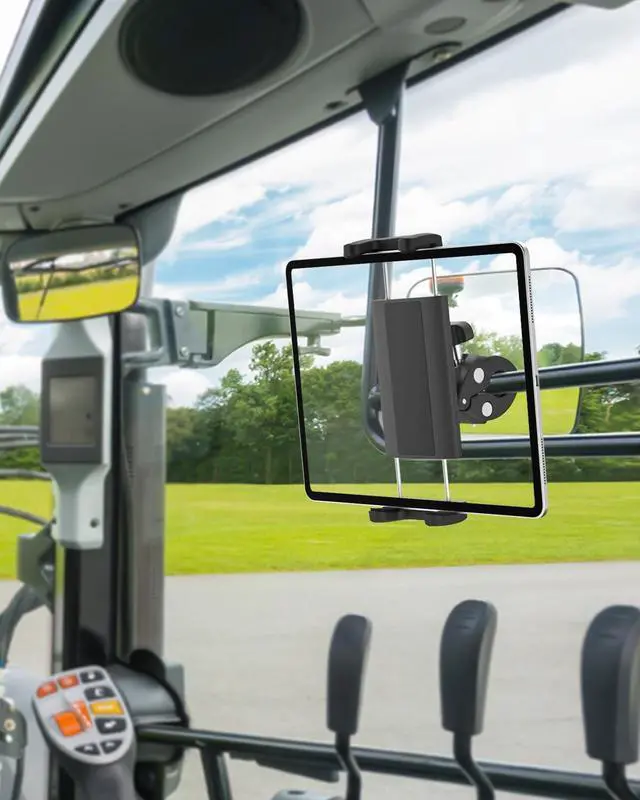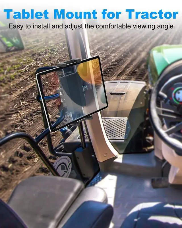 Super StableThe Tractor ipad clip mount is made from upgraded ABS plastic, and padded with non-slip silicone. Easy-to-lock tractor tube with protective pads so the farming machine tablet mount clips securely to the handle/ pole/ tube, protecting your devices from scratches and working well in very harsh environments. ^^ Beneficial ViewingThe tablet holder of this agricultural machine can be rotated 360 degrees to provide you with the best viewing angle. Ideal for viewing work processes, work routes when working in the field. View job details while using forklifts to load and unload goods.