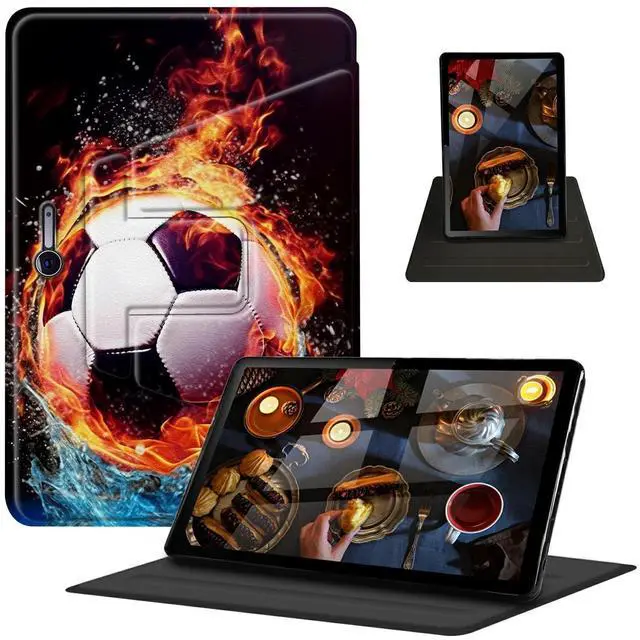 Features: Lightweight portable for working/ traveling Available in a variety of bright and fun colors Premium materials PU leather + stretch esistant TPU 360 Degree Swivel Stand multi-angles viewing adjustable Two anti-slip grooves support 3 flexible viewing positions Quick access to all important features such as buttons, camera, speaker, and ports. Auto Wake/Sleep Boosting your tablet productivity of battery endurance and power saving.