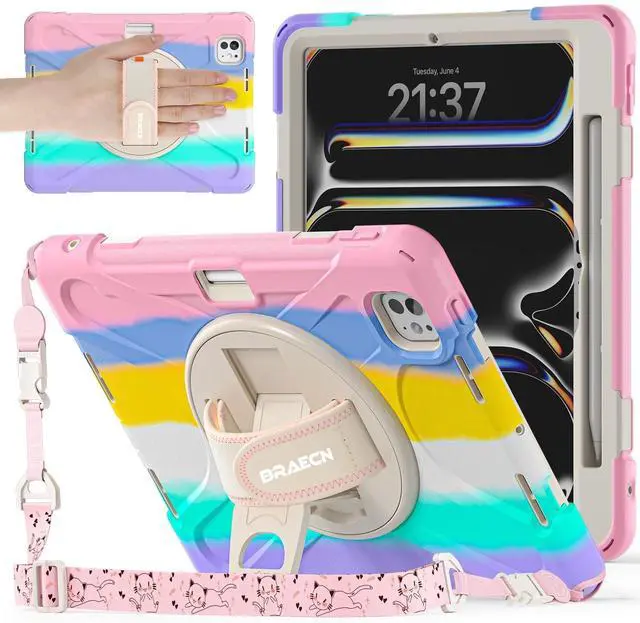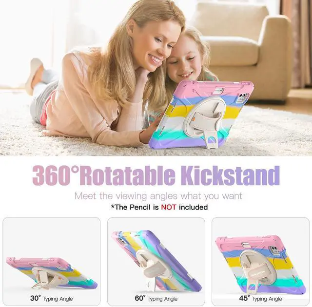 Military-Grade Protection: The iPad Pro 11 inch Case M5/ M4 with 4-Layer construction (hard PC front shell + anti-collision TPU+ hard PC inner shell + soft Silicone ) for anti-shock, anti-scratch, and anti-dirt defense. Kid-friendly materials Safe for students and children ^^ 360 Rotatable Stand +