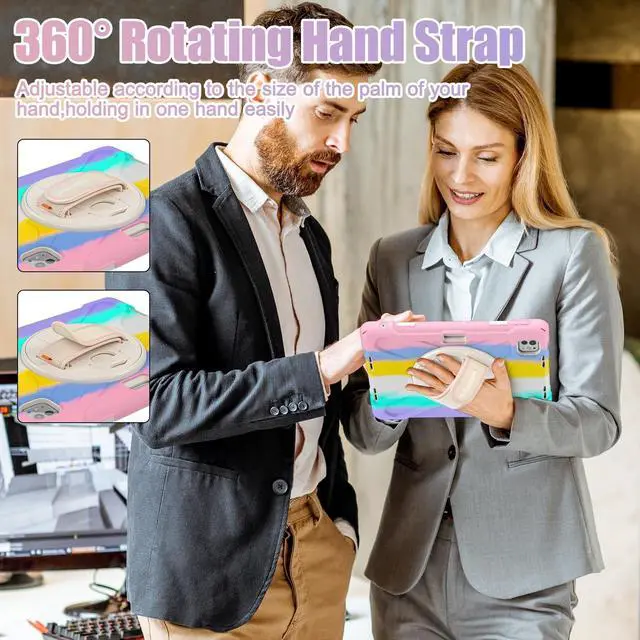Adjustable Hand Strap: The Pro 11 inch Case 2025/2024 built-in kickstand for vertical & horizontal viewing (perfect for videos, reading, or meetings). Ergonomic hand strap fits all hand sizes (adults, kids, students) ^^