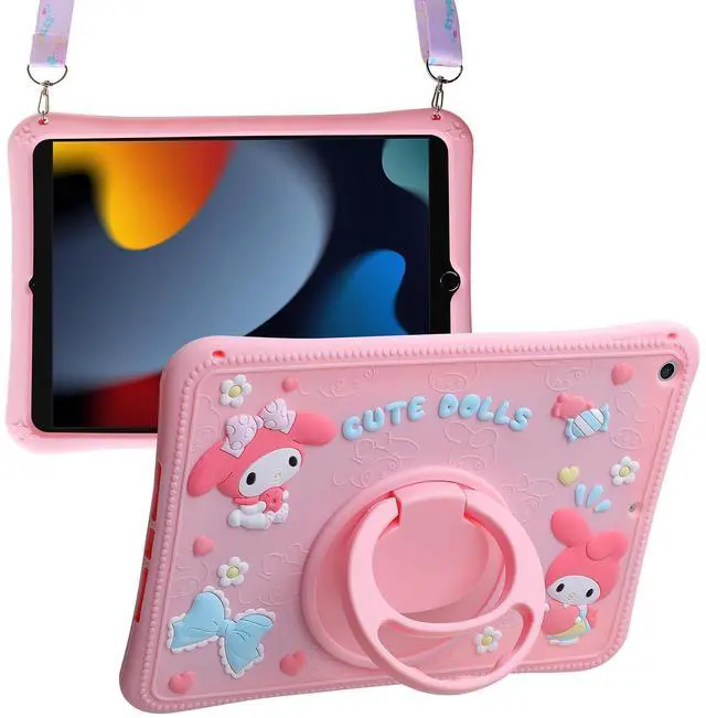 Carechoi for iPad 10th Generation Case 2022 with Kickstand Lanyard Soft Cartoon Silicone Case for Girls Kids Cute Protective Tablet Cover for iPad 10th Gen 10.9 inch 2022 (Pink) Carechoi Kids Case for iPad (A16) 11th Generation 11 inch 2025 / iPad 10th Gen 10.9" 2022 Cute 3D Cartoon Silicone Tablet Cover for Girls with 360 Rotating Stand, Adjustable Strap (Pink)
