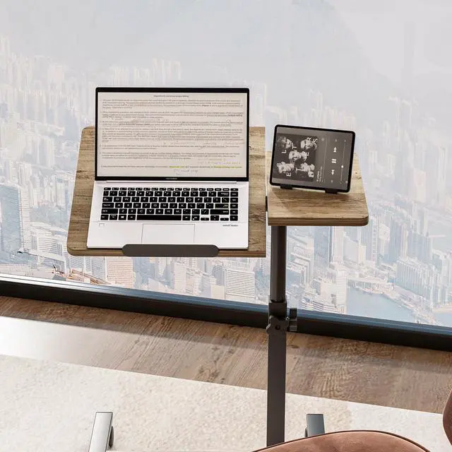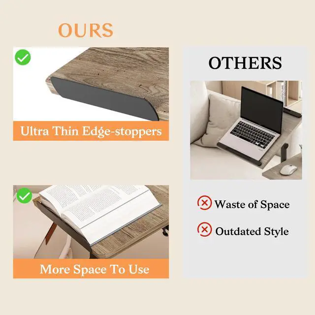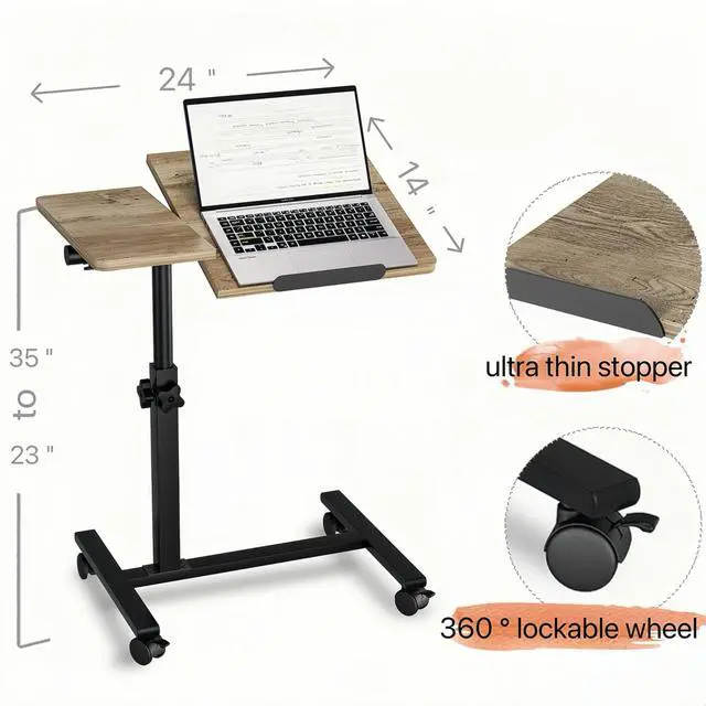 • FLEXIBLE& MOBILE COMPUTER WORKSTATIONWe used larger wheels,Includes locked wheels that will be used as a night stand to secure it at a bedside, a sofa, a recliner or with a wheelchair,Large wheels make this moblie bed side table moving smoother.