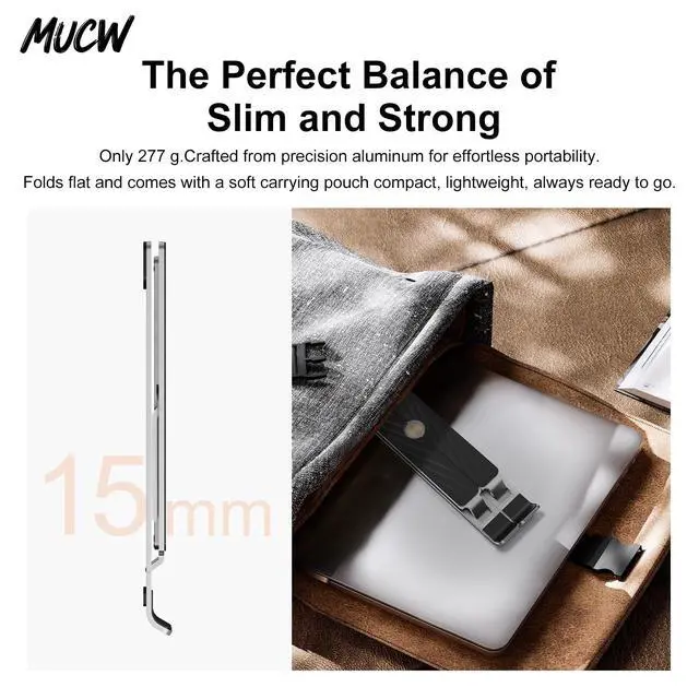 Ergonomic Comfort: The MUCW MX10 Pro laptop stand helps you maintain proper posture during long working hours. With 6 adjustable height levels, it reduces strain on your neck, shoulders, and back perfect for professionals who spend hours at their desks. ^^ Sleek &