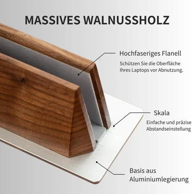 High-Quality Materials - Laptop stand adopts North American walnut with aluminum alloy base, high-end atmosphere, walnut's unique texture is natural and beautiful, feel the natural atmosphere ^^ Adjustable Base Design - Adjustable base width, compatible with all kinds of laptop tablet devices with width 0.5 - 1.4 inch, small wrench included in the package, easy and convenient to adjust ^^ Protection & Stability - The walnut stand comes with a protective pad on the inside to protect your laptop from scratches and a non-slip pad on the bottom to ensure that the stand is very stable on any desktop ^^ Save Desk Space - Vertical laptop stand, compared to the laptop flat on the desktop, more space-saving, so that the desktop is more efficiently utilized, say goodbye to the cluttered desktop ^^ Friendly Customer Service - If you have any questions, please feel free to contact us.