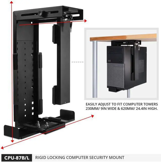 ^^ THE PERFECT FIT: This computer mount comes with heavy-duty hardware that will hold most standard CPU cases up to 21.65 high, and up to 7.48 wide, safely and securely.