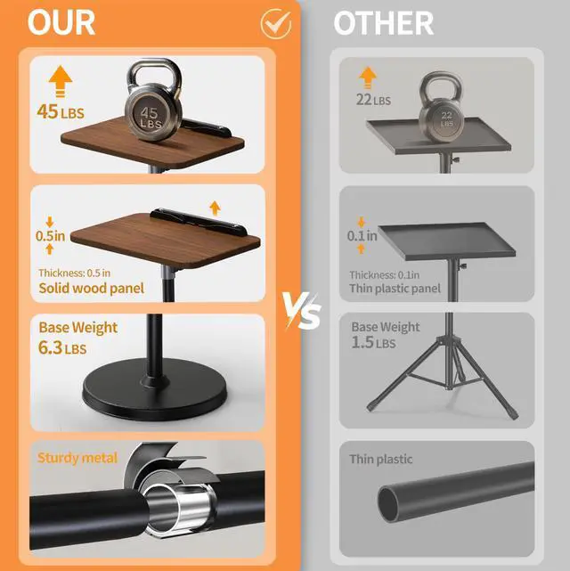^^ Rock-Solid Stability: Constructed from durable metal, this laptop stand holds up to 45lbs without tipping. Built to last, it's ideal for heavy laptops, projectors, and more. Place your equipment with confidenceit's secure and stable. ^^