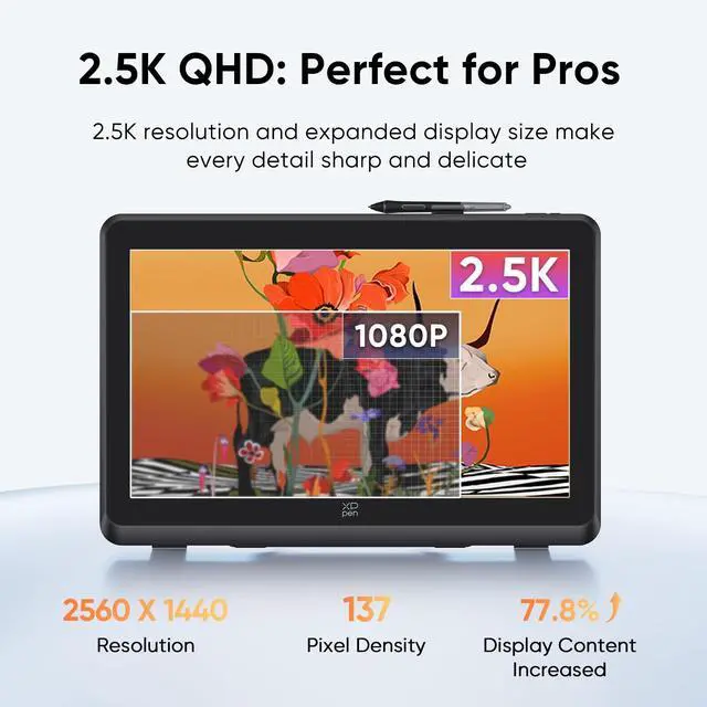 Crystal Clear Visuals: The Artist Pro 22 Gen2 drawing tablet features a 2560 x 1440 resolution with a 33% increase in pixel density (137 PPI), providing a clear view without scrolling. The 21.5 -inch display and 16:9 aspect ratio offer comfortable workspace, while the 178 viewing angle ensures accurate colors from any position. Perfect for professional artists, this tablet enhances creativity and showcases your art beautifully ^^