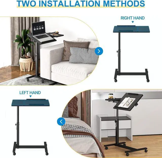 Durable & Angle Adjustable: Rolling laptop desk is made of iron tubes and an MDF desktop, desktop can hold your laptop and mouse well; Adjustable 360 tiltable design laptop desk cart can perfectly fulfill your purpose while working with your computer