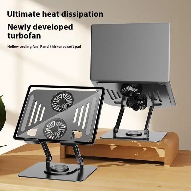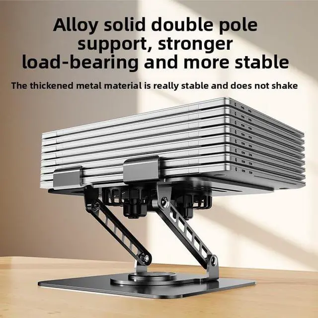 Upgrade your workspace with our 360 Rotatable Carbon Steel Laptop Stand, designed for comfort, durability, and flexibility. Its adjustable height and tablet lift help improve posture and reduce strain, while the open structure provides effective cooling to keep your device running smoothly. Built from strong carbon steel, this foldable and portable stand is perfect for home, office, or travel use. Mejora tu espacio de trabajo con nuestro soporte para laptop de acero al carbono giratorio de 360, disenado para brindar comodidad, durabilidad y flexibilidad. Su altura ajustable y elevador para tablet ayudan a mejorar la postura y reducir la tension, mientras que la estructura abierta proporciona enfriamiento eficaz para mantener tu dispositivo funcionando sin problemas.