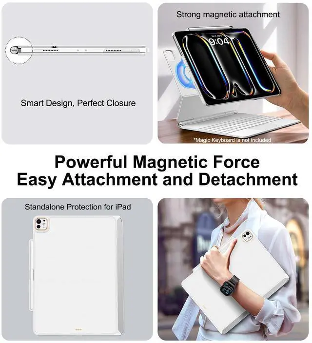 Compatible: Seamlessly works with the Apple Magic Keyboard, allowing pass-through charging and magnetic attachment for the Apple Pencil without removing the case. ^^