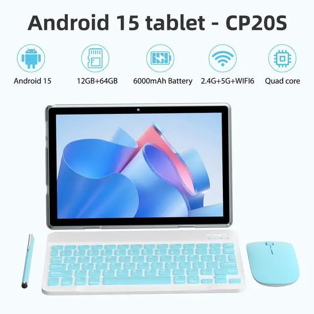 [Android 15.0 Tablet] The 10inch tablet equipped with stable Android 15.0 system, built-in 1.8GH z Quad-core CPU, 12GB (4GB+8GB Expand) RAM and 64GB ROM, with microSD card slot which can expanded up to 512GB, more app, songs, videos and pictures can be saved right on your tablet. ^^ 10Inch HD Screen Tablet The stunning 10-inch eye protection full screen has a larger visual area and a wider visual field, adopts a 1280*800 IPS HD touch screen, whether you play games, watch movies, read, take notes and work, it can bring you immersive visual enjoyment.