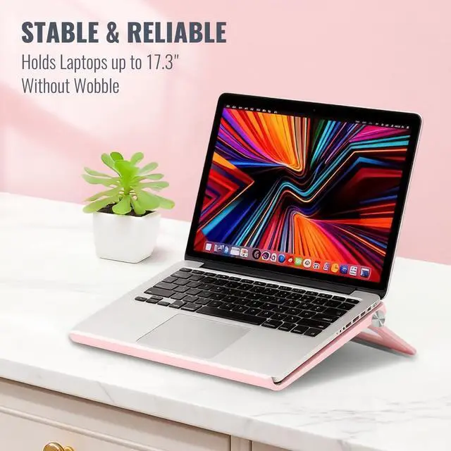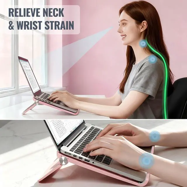 Relieve Neck & Wrist Strain: Designed as a laptop stand pink users love, it elevates your laptop to eye level, improving posture and comfort during long hours of work, study, or video calls. Say goodbye to stiff necks and sore wrists ^^ Strong Support for