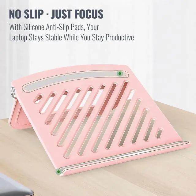 Non-Slip & Cooling Design: Our laptop tilt stand features premium silicone pads to prevent sliding, while open ventilation keeps your laptop cool and running smoothly ^^