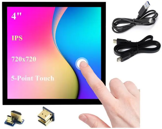 4inch HDMI LCD IPS screen, hardware resolution is 720 x 720. 5-point capacitive touch, toughened glass panel, hardness up to 6H. ^^ Compatible with Raspberry Pi 5/4B/3B+/3B/2B/Zero/Zero W//Zero 2W/Jetson Nano/ Windows 11/10/ 8.1 /8/7, etc. ^^ When working with RPi, it supports RPi OS / Ubuntu / Kali and Retropie. No Driver required for USB-C touch. Config file is required for I2C touch. ^^ When working with Jetson Nano, it supports Ubuntu. 1) Switch the touch interface selector switch to "USB". 2) Connect the Power&Touch interface of the LCD to the USB interface of the Jetson Nano.