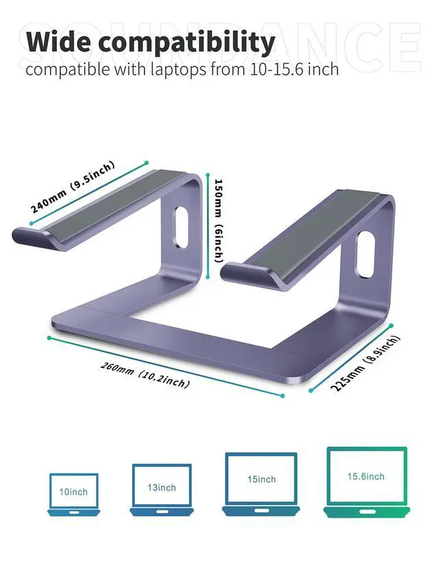 • Suit for any laptop 10 to 15.6 inches - The laptop stand fits all laptops 10 to 15.6 inches, such as notebooks PC computers 10 inches, 11 inches, 12 inches, 13 inches, 13.3 inches, 14 inches, 15 inches, 15.4 inches, 15.6 inches, etc.