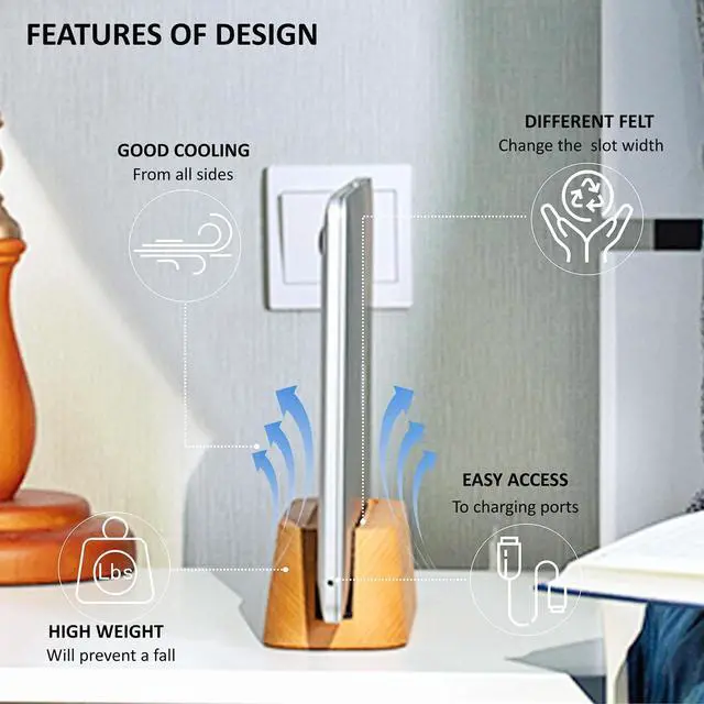 ^^ &: Exquisite Fagus wood in this vertical laptop stand showcases meticulous craftsmanship. Enjoy a skin-friendly feel with an environmentally friendly wood wax oil-treated surfacean ideal wooden laptop stand choice.