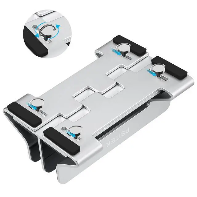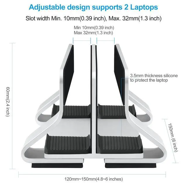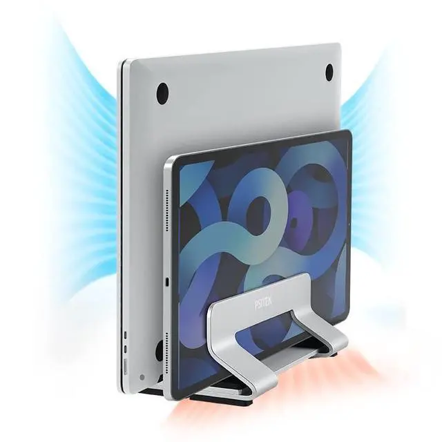 Space-Saving and Organized: Store your laptop or MacBook vertically with the Psitek Aluminum Dual Vertical Laptop Stand Dock Holder to free up desk space and keep your workspace organized.