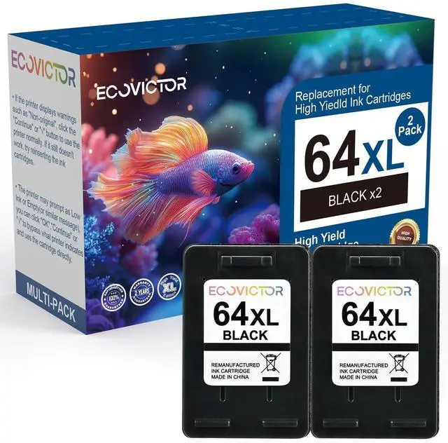 Long-Lasting Page Yield: EcoVictor 64xl black ink cartridge for hp printers prints up to 600 pages each (at 5% coverage). EcoVictor for hp 64xl ink cartridge combo pack is perfect for home, school, or office use. Enjoy long-lasting printing performance without the hassle of frequent replacements. ^^ Smart Chip, Easy