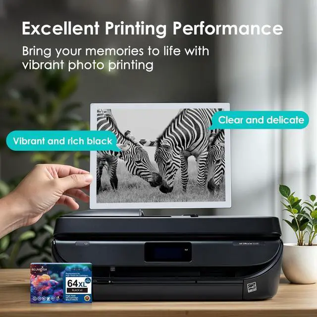Easy Setup: Each package includes 64 xl black ink cartridges x2 and a user manual for easy installation. Each for hp 64 black ink cartridge is securely packed to ensure safe delivery and consistent print quality from the first page to the last. ^^ Quality You Can