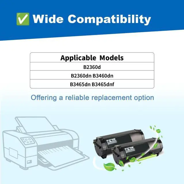 Compatible Printers: These B2360 cartridges are compatible with: Dell B2360d/B2360dn/B3460dn/B3465dn/B3465dnf Printers ^^ Advanced Toner -