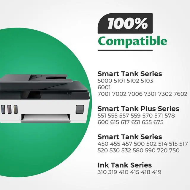 ^^ Excellent Printout: This compatible smart tank 5000 ink refill, smart tank 7602 ink refill, smart tank 7001 ink refill, smart tank plus 651 ink refill, smart tank 5102 ink refill can meet your daily printings and give you vibrant color, sharp text printing effect. Whether printing documents or photos, The prints with our ink are resistant to fading and smudging.