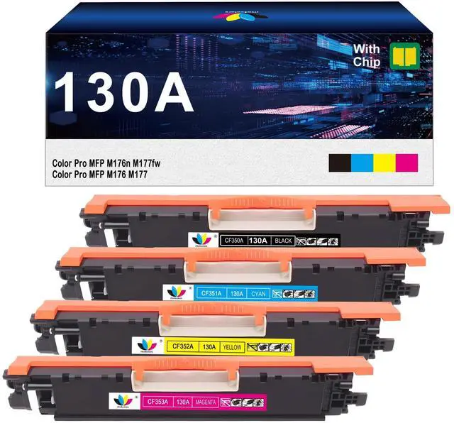 Package Include: 4 Pack 130A CF350A toner cartridge replacement for HP 130A toner cartridges MFP M177fw toner (Black, Cyan, Magenta, Yellow) ^^