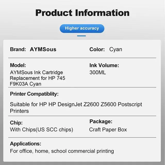 Ink Volume: 300ML Cyan Ink with SCC chip, has the same high page yield as the original ^^