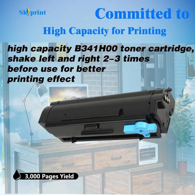 SkyPrint B341H00 toner cartridges come with intelligent chips that automatically recognize and provide printin, Not damaging the machine,Shake the toner cartridge horizontally 2-3 times before use to evenly distribute the toner