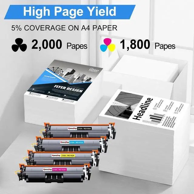 High Page Yield: Up to 2, 000 pages per 210A black toner cartridge and 1, 800 pages per 210A color toner cartridge (Letter/A4, at 5% coverage) ^^