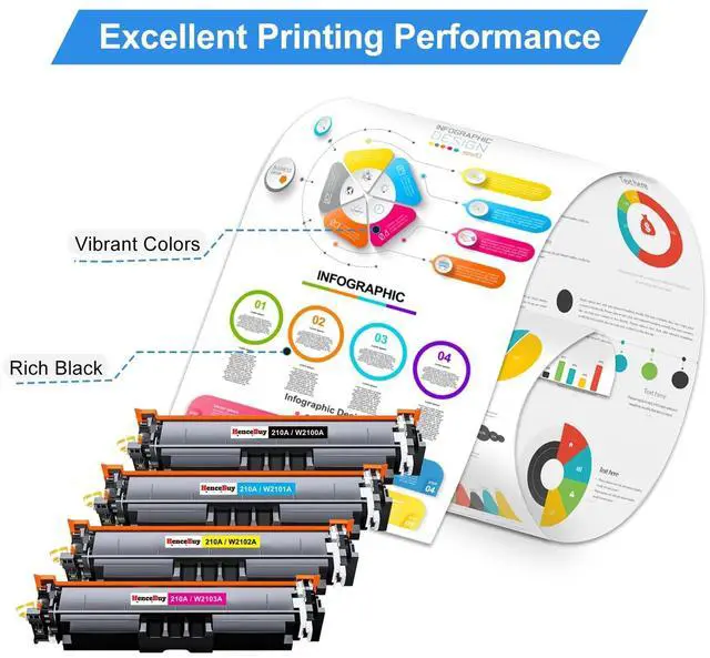 High Quality: HenceBuy 210A 210X toner cartridges for hp color laserjet pro mfp 4301fdw toner deliver superior printing results with vivid colors and clear prints. No Fading, No powder leakage, No Streak.