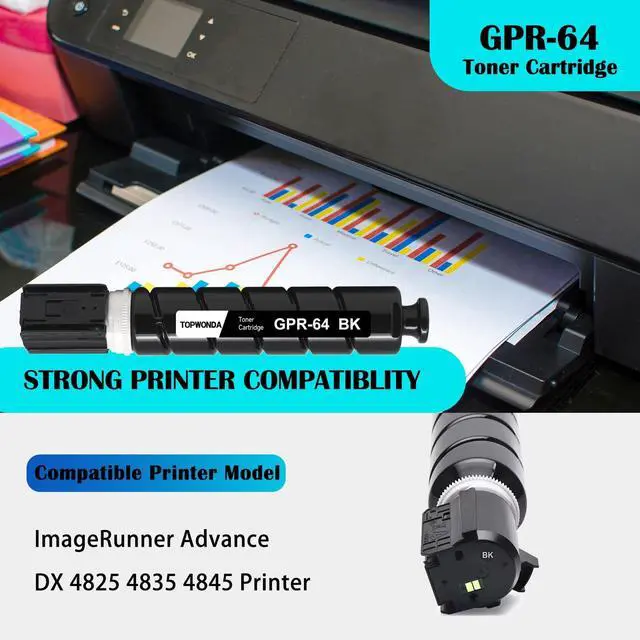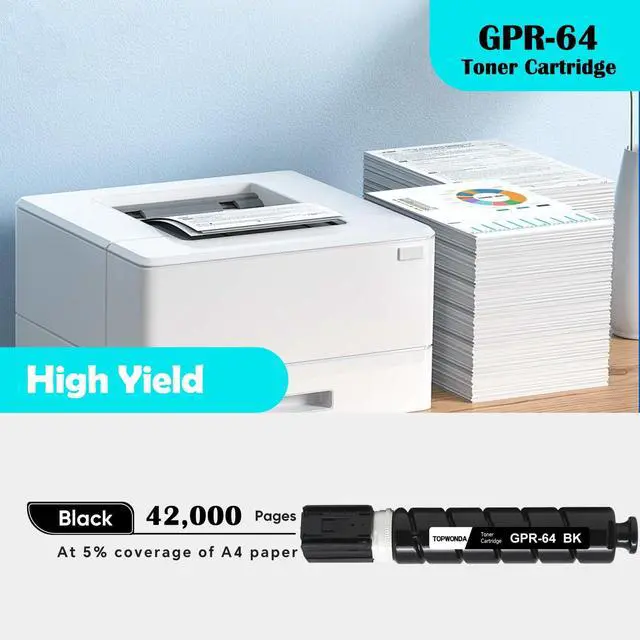 Page Yield: 42, 000 pages for each GPR-64 Black toner cartridge at 5% coverage on A4 paper ^^ Our TOPWONDA GPR64 Black toner cartridge provide you with high printing volume and good printing experience, Please let me know if you have any questions after receiving the product, we hope we can help