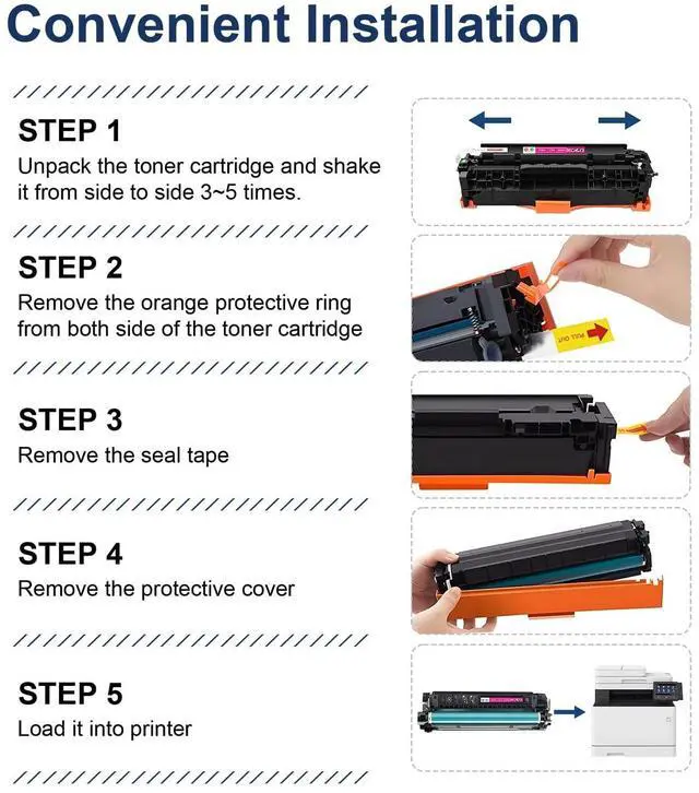 Upgraded Chip: Adapt the latest upgraded chip that can be quickly recognized by the printer for perfect compatibility. The inbuilt smart chip can indicate the toner level left and you can buy a new one in time. ^^