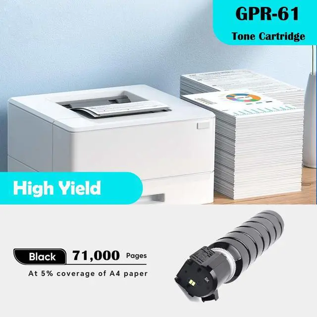 Page Yield: 71, 000 pages for GPR61 Black toner cartridge at 5% coverage on A4 paper ^^ Our TOPWONDA GPR-61 Black toner cartridge provide you with high printing volume and good printing experience. Please let me know if you have any questions after receiving the product, we hope we can help