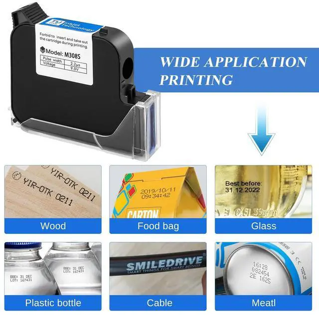 Wide Applications: These ink cartridges are suitable for both water-absorbing and non-absorbing materials including: paper, wood, cartons, fabric, leather, fiberboard, plastic, ceramic, glass, metal, and aluminum foil, etc ^^
