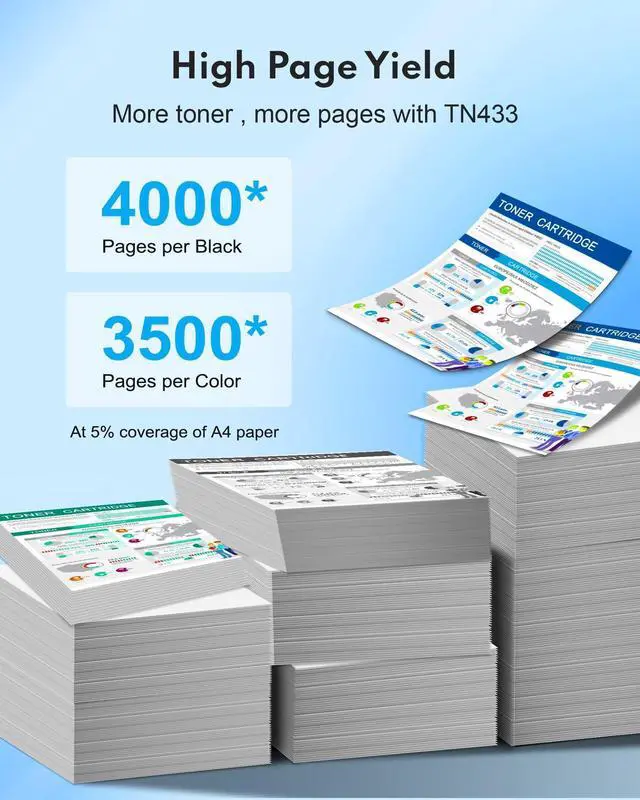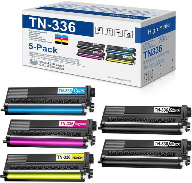 Package Contents: 5-Packs TN-336 (TN336K TN336C TN336M TN336Y) Toner Cartridge ^^ Print more, cost