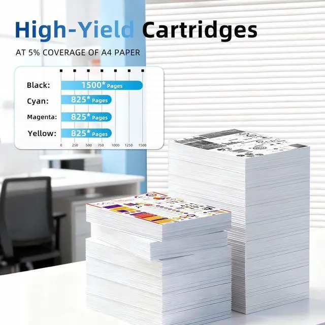 High Page Yield: Up to 1, 500 pages per Black & 825 pages per Color Ink Cartridge (at 5% coverage, Letter/A4) ^^