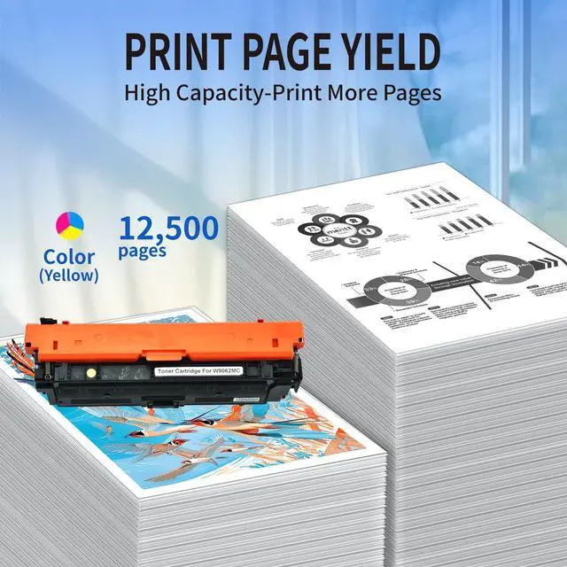 Page Yield: Up to 12, 500 pages per W9062MC Yellow toner (Letter/A4, at 5% coverage), replacement for HP W9061MC Yellow Toner ^^ Reliable Printing