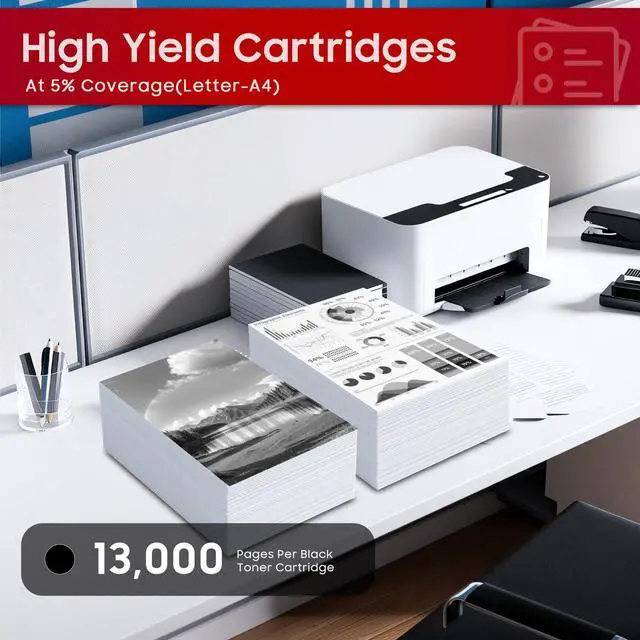 High Page Yield: T10 Black Toner Cartridge can print 13, 000 pages (Letter/A4, at 5% coverage) Minimize the hassle of frequently changing toner cartridges ^^