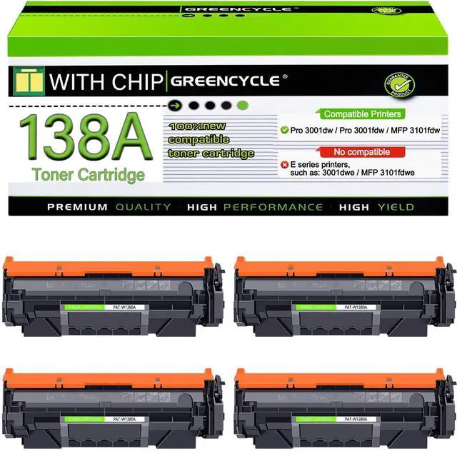 With Chip: 138A Black Toner Cartridge replacement for HP 138A W1380A High Yield Toner with the latest chip, No need to remove and install the old chip on 138A toner cartridges.