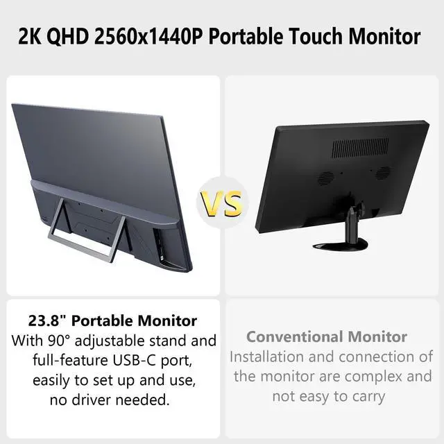 Compatible with: Windows laptops/PCs, Android phones (with DP Alt Mode), Mac (display only, no touch), gaming consoles (display only), and more. ^^ **Expansive 23.8 -Inch 2K QHD