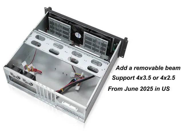 8x 3.5 or 6x 3.5 +2x 2.5 drive bay ^^ ATX 12x 9.6 / Micro-ATX 9.6 x 9.6 / Mini-ITX 6.7 x 6.7 (When using an ATX motherboard, part of it will be positioned under the PSU, limiting access to some components. The PSU will occupy two PCI slot spaces. ) ^^ 2 x120mm + 1 x 80mm fan infront+2 x 60mm fan at rear pre-installed ^^