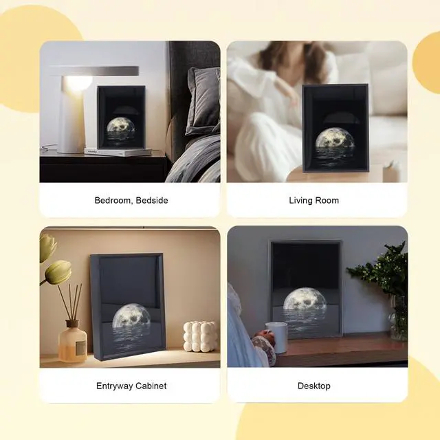 ^^ Art Picture: Romantic and practical design. Carefully crafted with soft starlight illumination to gently light up the night. Its stylish design and compact size (18 x 24cm) make it an elegant addition to any modern living space, great for birthdays, anniversaries, or simply as a romantic surprise.