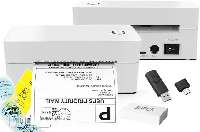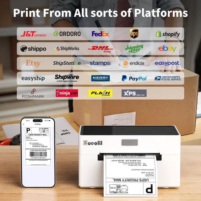 EueoLil 4x6 Thermal Label Printer, All-in-One Portable Bluetooth Shipping Label Printer for Small Business Compatible with Android/iPhone/Mac/Windows for , Ebay, Shopify, Etsy, USPS & UPS,White