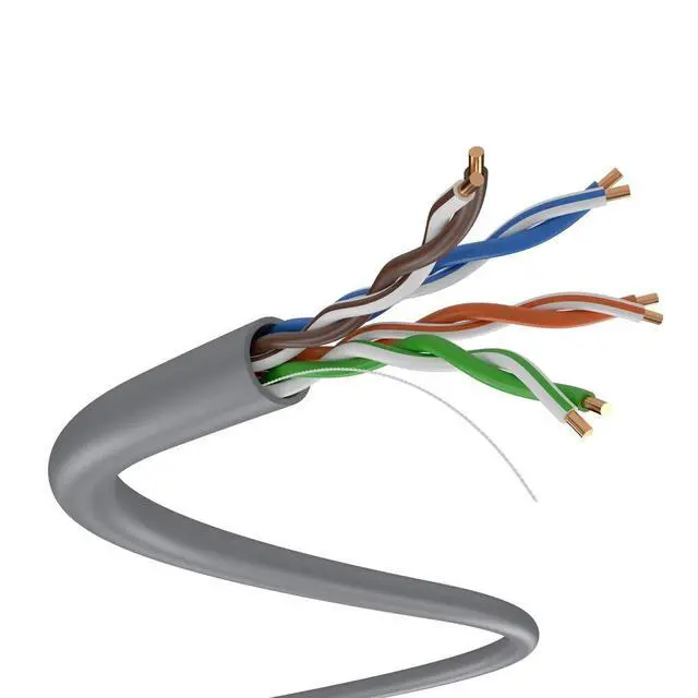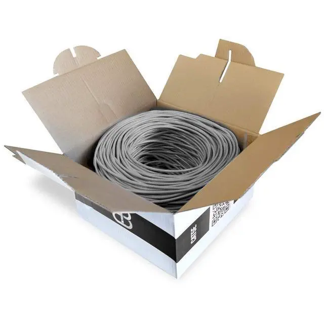 Features: Cat5e 4 Solid UTP Unshielded Twisted Pair Meets or exceeds Category 5e specifications. 24 AWG Solid CCA (Copper Clad Aluminum) Gigabit Network Ready. Speed Rating of 350Mhz Easy pull box Voice and Data communications Running "FT" count printed on cable makes measuring easy
